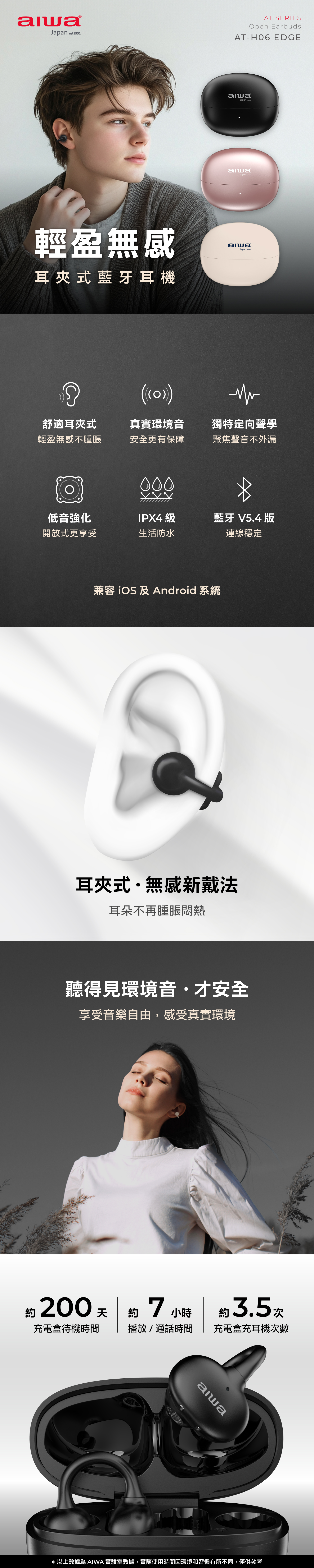 - 舒適耳夾式,輕盈無感不再脹痛