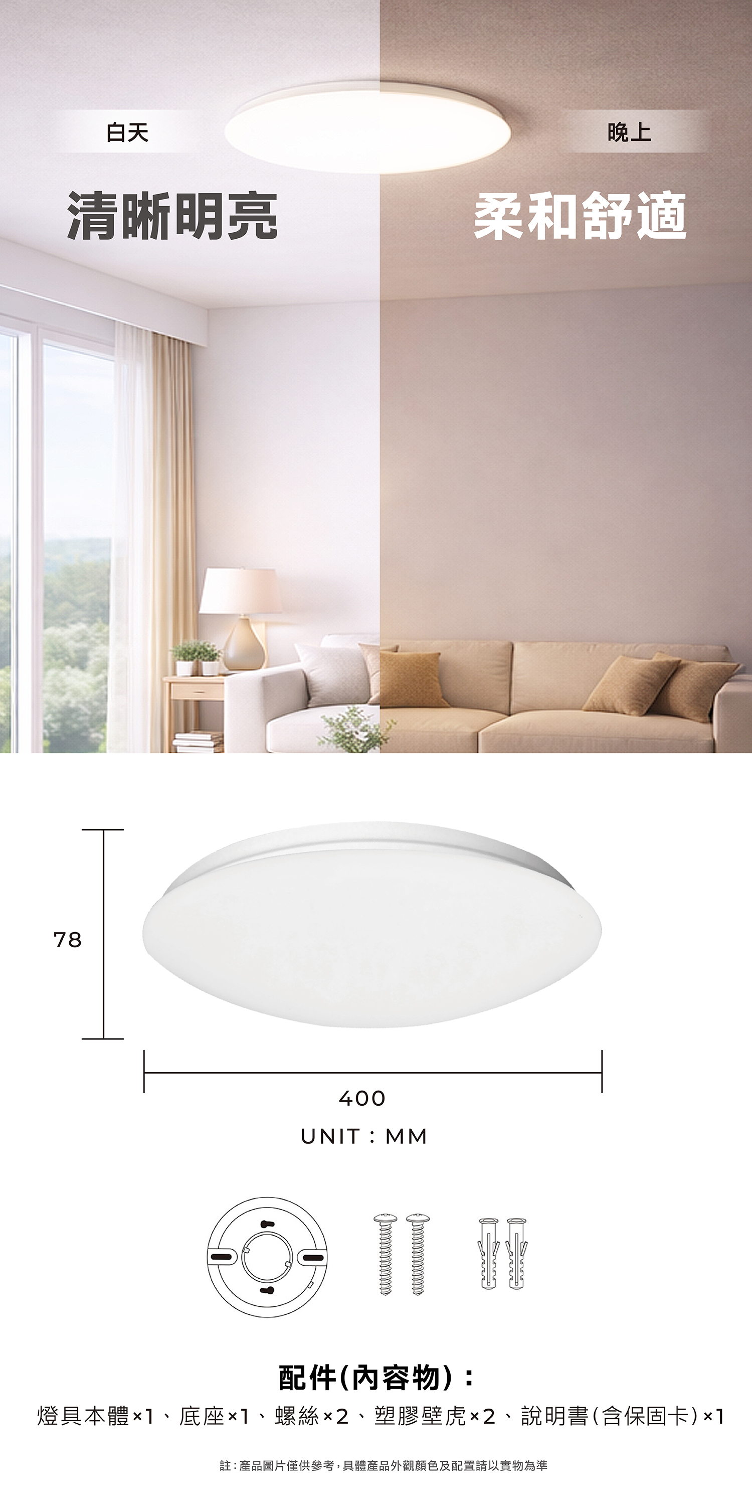 - 燈體底座使用耐熱塑膠,使用上安全無虞